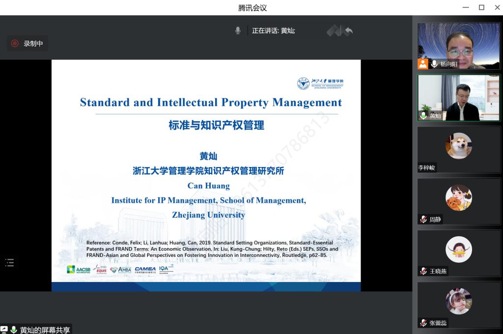 黄灿教授在线上做了题为《标准与知识产权管理》的学术讲座。本次讲座由飞速直播