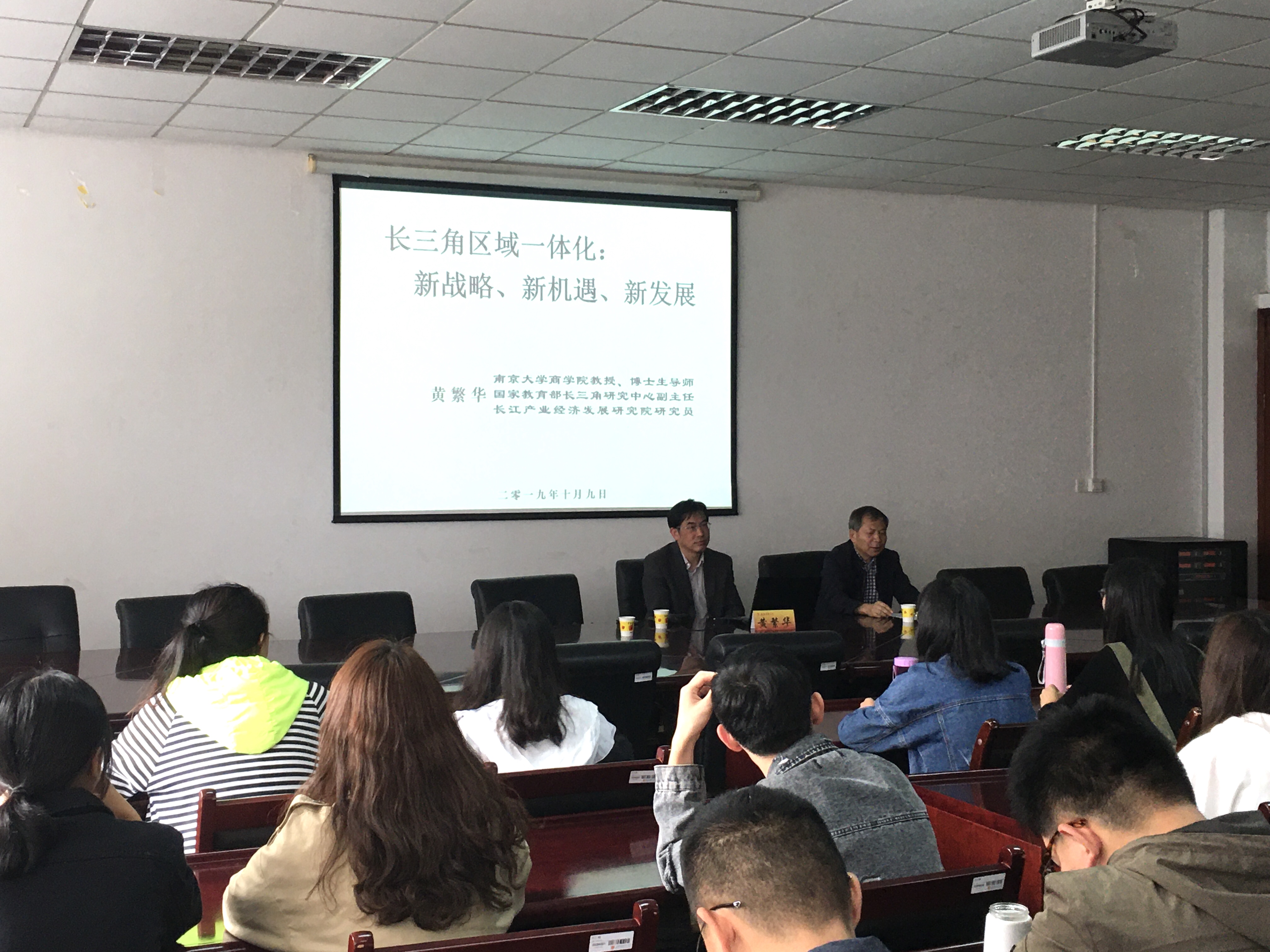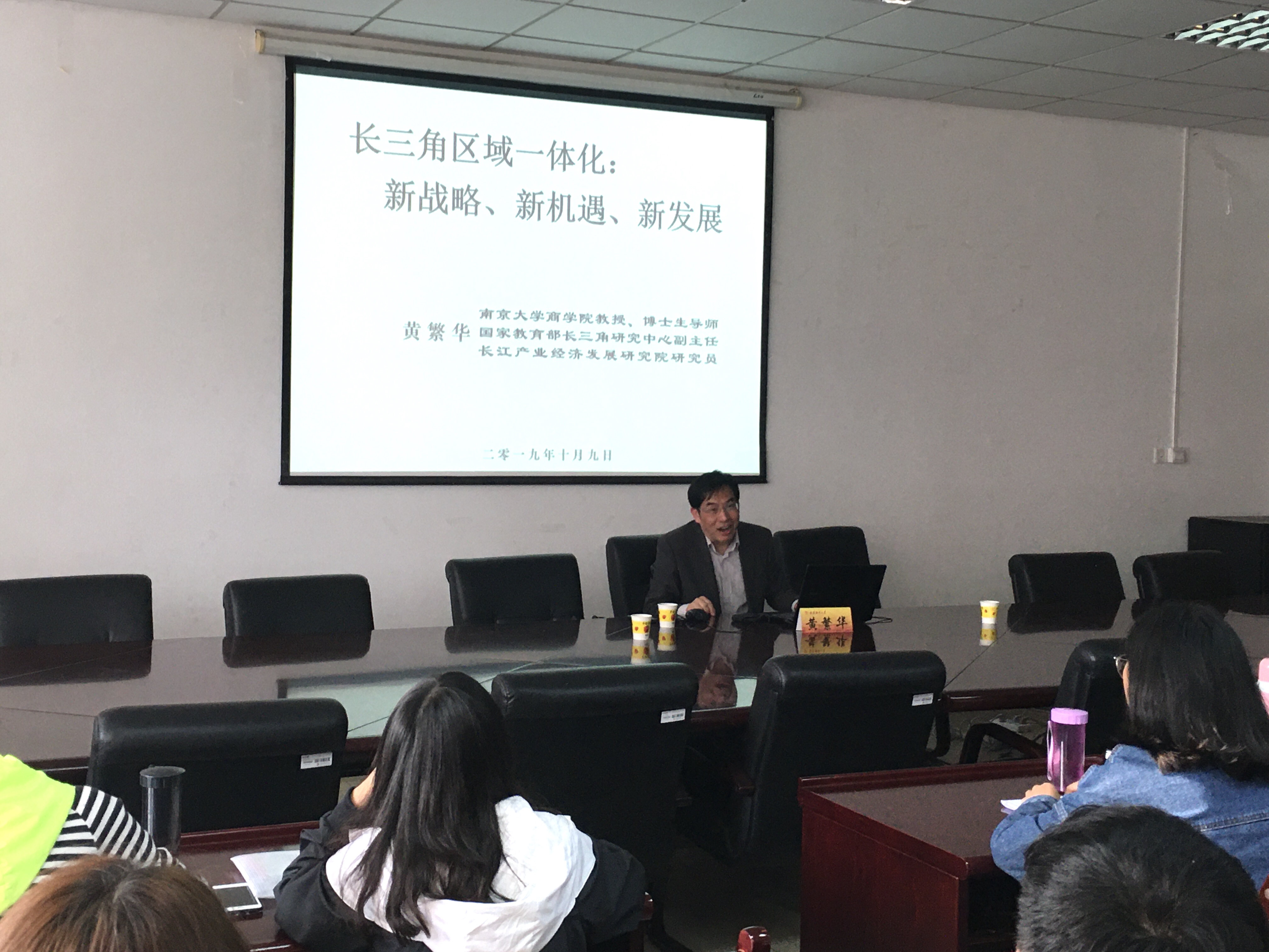 教授、博士生导师、教育部长三角研究中心副主任、长江产业经济发展研究院研究员黄繁华来到德经楼308会议室,为飞速直播app官方下载