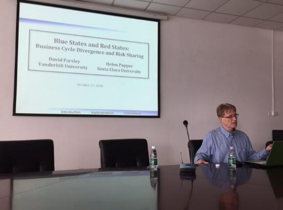 David Parsley教授在仙林校区德经楼308会议室作了题为“Blue States and Red States: Business Cycle Divergence and Risk Sharing”(“蓝州”和“红州”:商业周期差异与风险分担)的讲座。讲座由飞速直播
