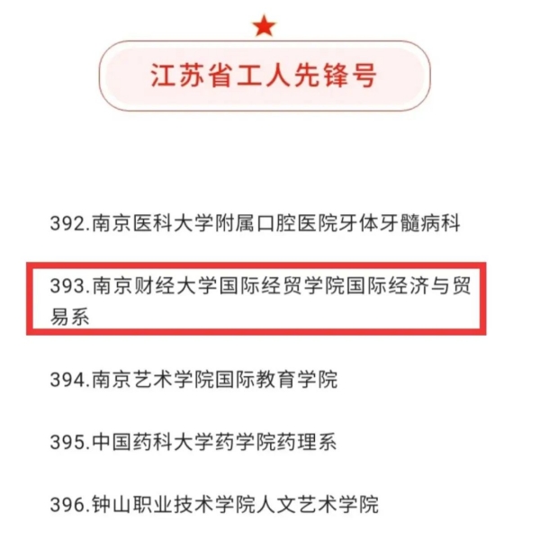 国际经济与贸易系成功入选,喜获“江苏省工人先锋号”这一荣誉!