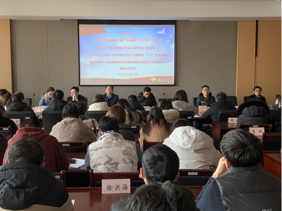 会议还集中学习了《中共江苏省委教育工委江苏省教育厅2022年工作要点》、葛道凯厅长在2022年全省教育工作会议上的讲话精神,学习了《省教育厅办公室关于认真组织学习<河南郑州"7.20”特大暴雨灾害调查报告>深刻汲取教训切实做好查漏补缺改进工作的通知》。