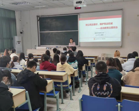 国贸1901班在德经楼105教室召开“树立宪法意识,维护宪法权威”主题班会。