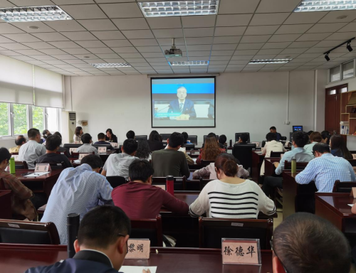 全体教职工在德经楼308会议室集中观看《南京财经大学工作进展通报会(第四期)》。此次通报会由校党委常委、纪委书记、派驻监察专员李茜主持。