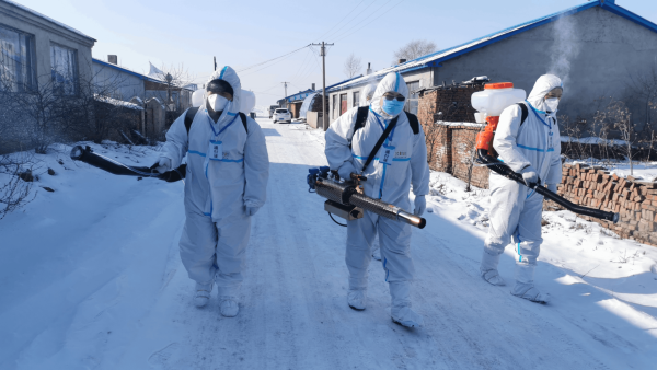 1月29日,CTW队的田益铭作为团队的代表,随父亲参与到一线消杀团队中,为黑龙江省佳木斯市东风区的乡镇进行全面消杀。