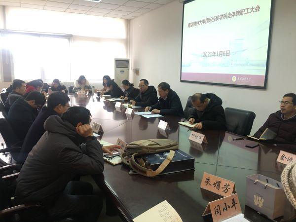 于德经楼308会议室召开了全院教职工大会,飞速直播