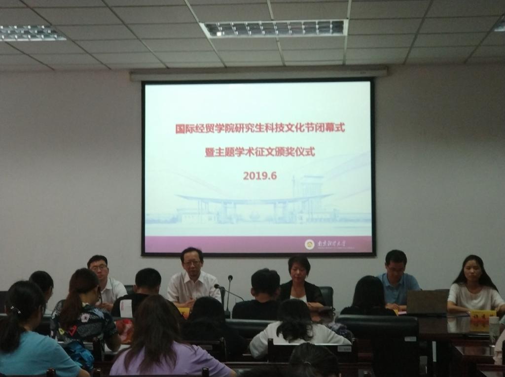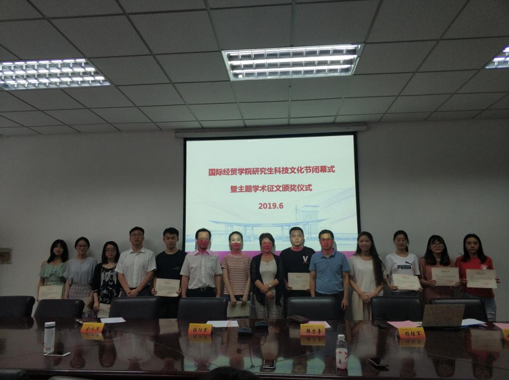 陈云云副教授等作了学术讲座;举办了“悟两会精神 铸学术华章”主题学术征文,收到全校来稿三十余篇,经过专家评审,9名研究生获得本次主题征文活动奖项。韩力争部长宣读了主题征文比赛的获奖名单,向获奖同学颁发了荣誉证书并与获奖学生合影。韩部长肯定了国贸学院本次科技文化节活动对于提高学生学术科研能力的重要意义与作用。她表示:“本次活动的最大亮点就是把思想性和学术性融为一体,紧密围绕人才培养质量、提高研究生科研学术能力的实践活动更加丰富多彩”。2017级国际贸易学专业欧习作为获奖学生代表发言。