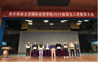 教师代表夏勇老师以诙谐幽默的画风,生动形象的语言,讲解了国贸院的优势:课程设置丰富,师资力量雄厚,学习知识前沿。殷切希望同学们好好把握四年大学时光。