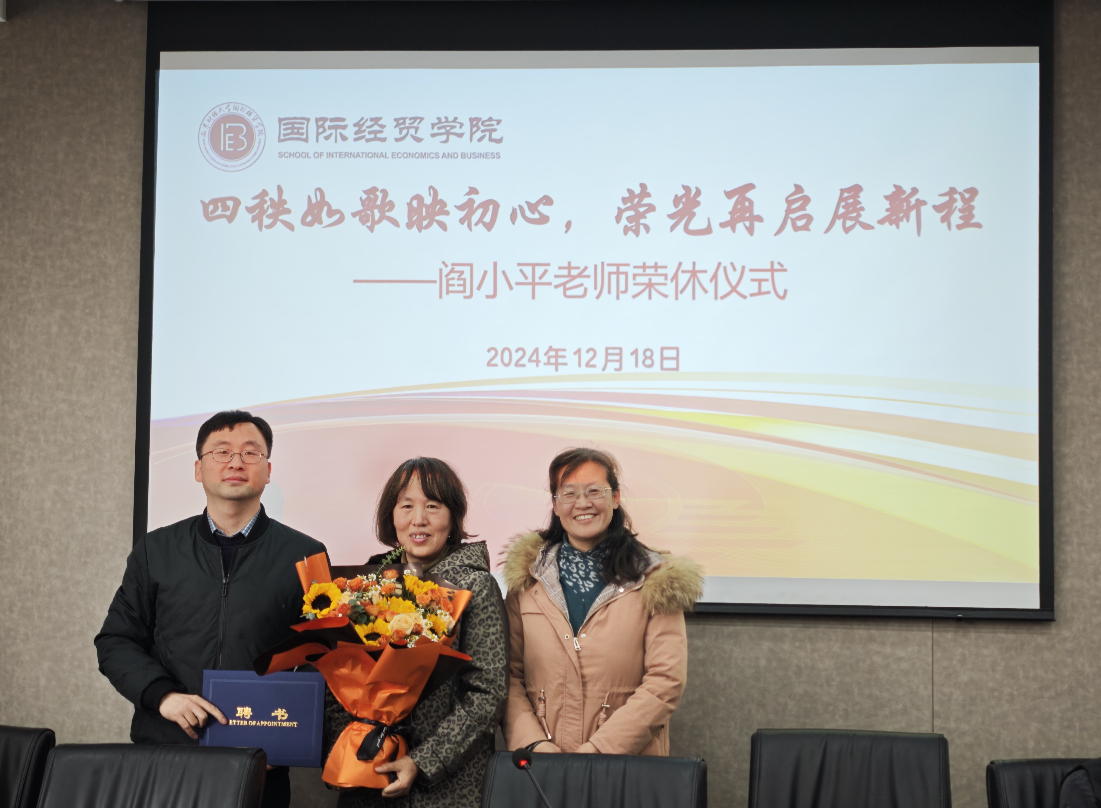 2024年12月18日下午,飞速直播 在德经楼308会议室举办“四秩如歌映初心,荣光再启展新程”阎小平老师荣休仪式。飞速直播 全体院领导、全体教职工参加了荣休仪式,院党委周亚芳书记主持了仪式。