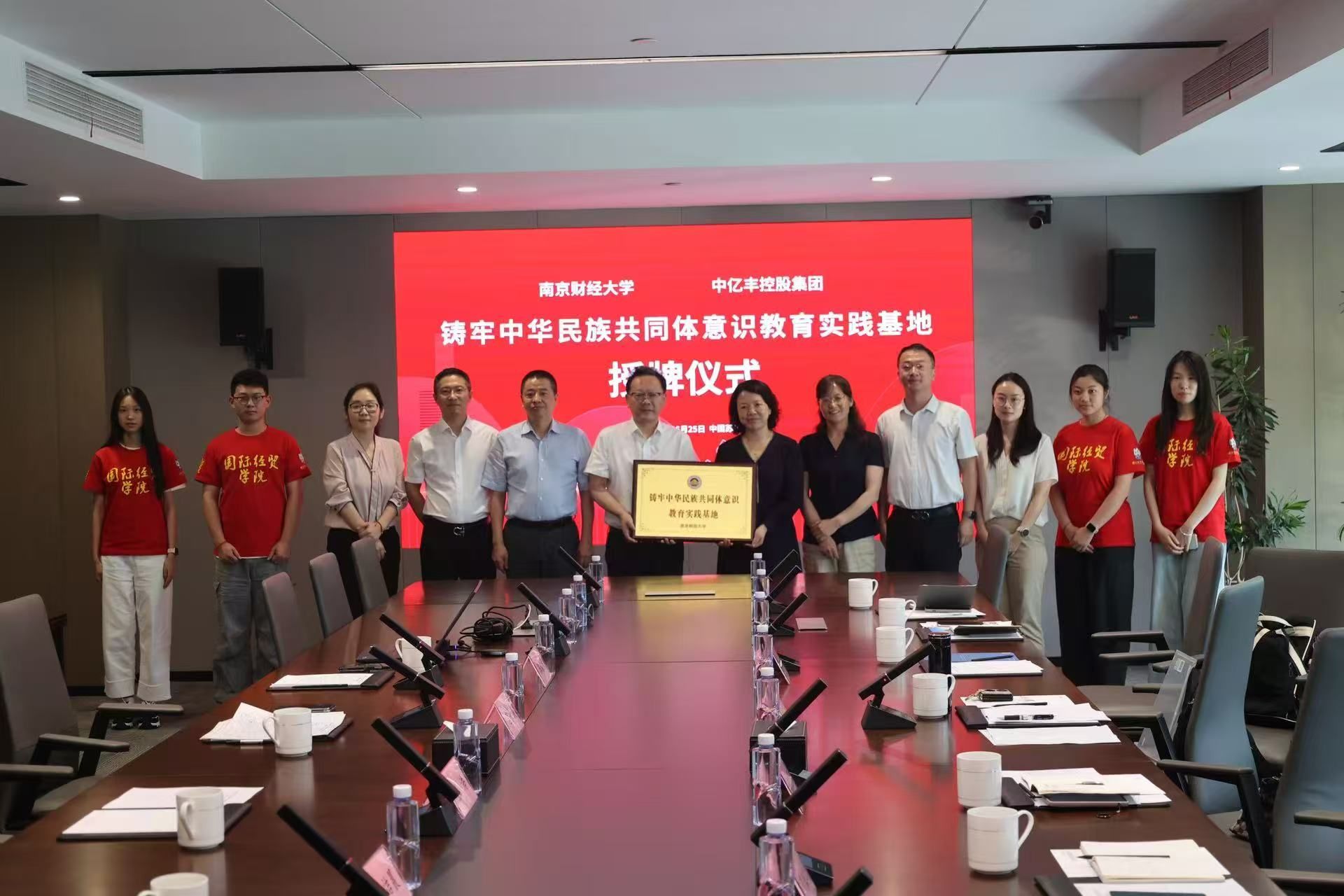 “运河文脉连民心 民族团结共前行”大学生实践团采访,结合个人经历向同学们介绍了推动民族团结进步工作的初心与愿景,并勉励青年学生将“小我”梦想融入中华民族一家亲、同心共筑中国梦的伟大实践中。李玉琴部长与张浩副书记共同为“南京财经大学铸牢中华民族共同体意识教育中亿丰控股集团基地”揭牌。