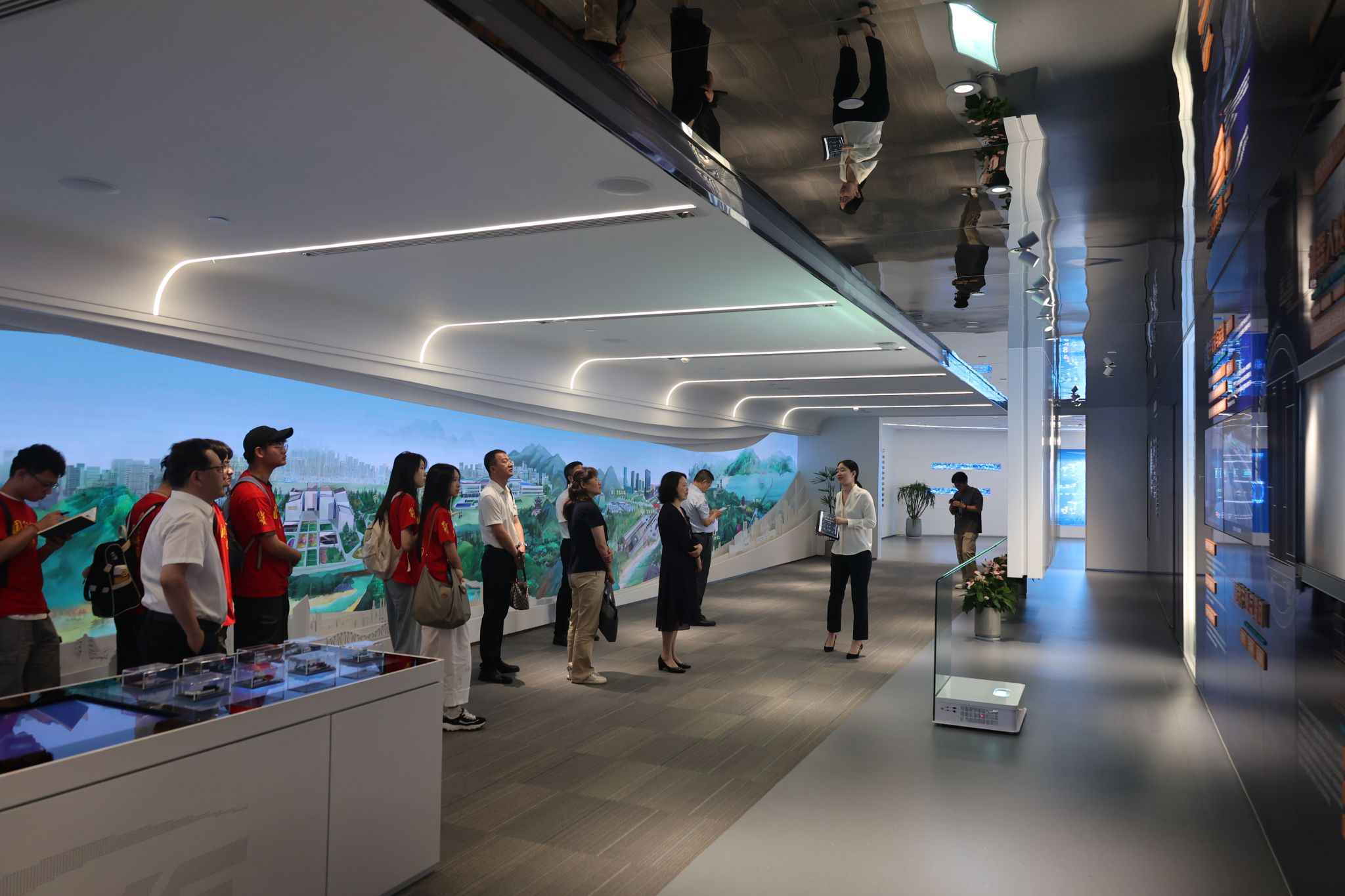 上午,实践团探访了中亿丰城市会客厅,参观了解了企业秉持“立足主业的匠心深耕、创新突围的模式探索、合力攻坚的三造融合、一以贯之的社会责任”,深入践行什么时候都不能忘记发展的初心使命,以城市建设运营综合服务为主线,聚焦工程建设、非遗传承、数字创新三大领域,打造运河沿线地标,建设优质境外工程,以数字化智能技术赋能各民族非遗文化新生,“建造筑基、制造强体、智造赋能”三造融合文化传承与时代动能的典型案例;深入了解了中亿丰积极构建“红石榴”党建品牌矩阵,培育“红色砼心圆”“红色铝行家”等民族团结企业样本,凝聚满、回、蒙古等14个民族员工的文化认同共创《中亿丰赋》,淬炼“运河精神”与“石榴籽精神”交融的精神纽带的生动实践。