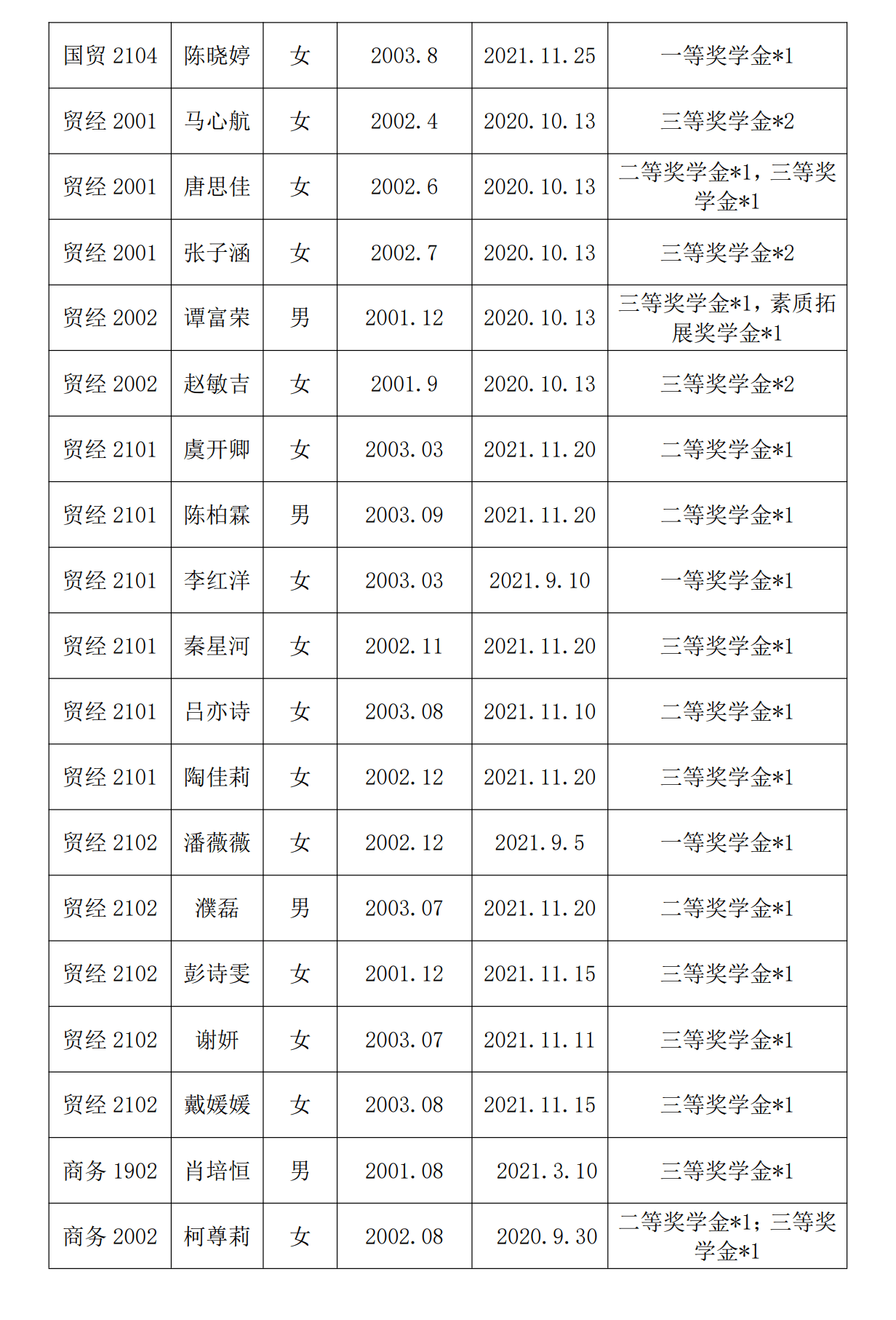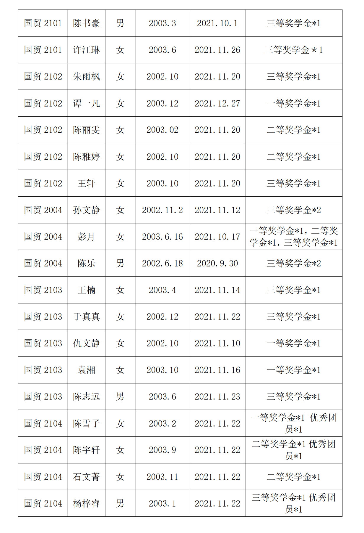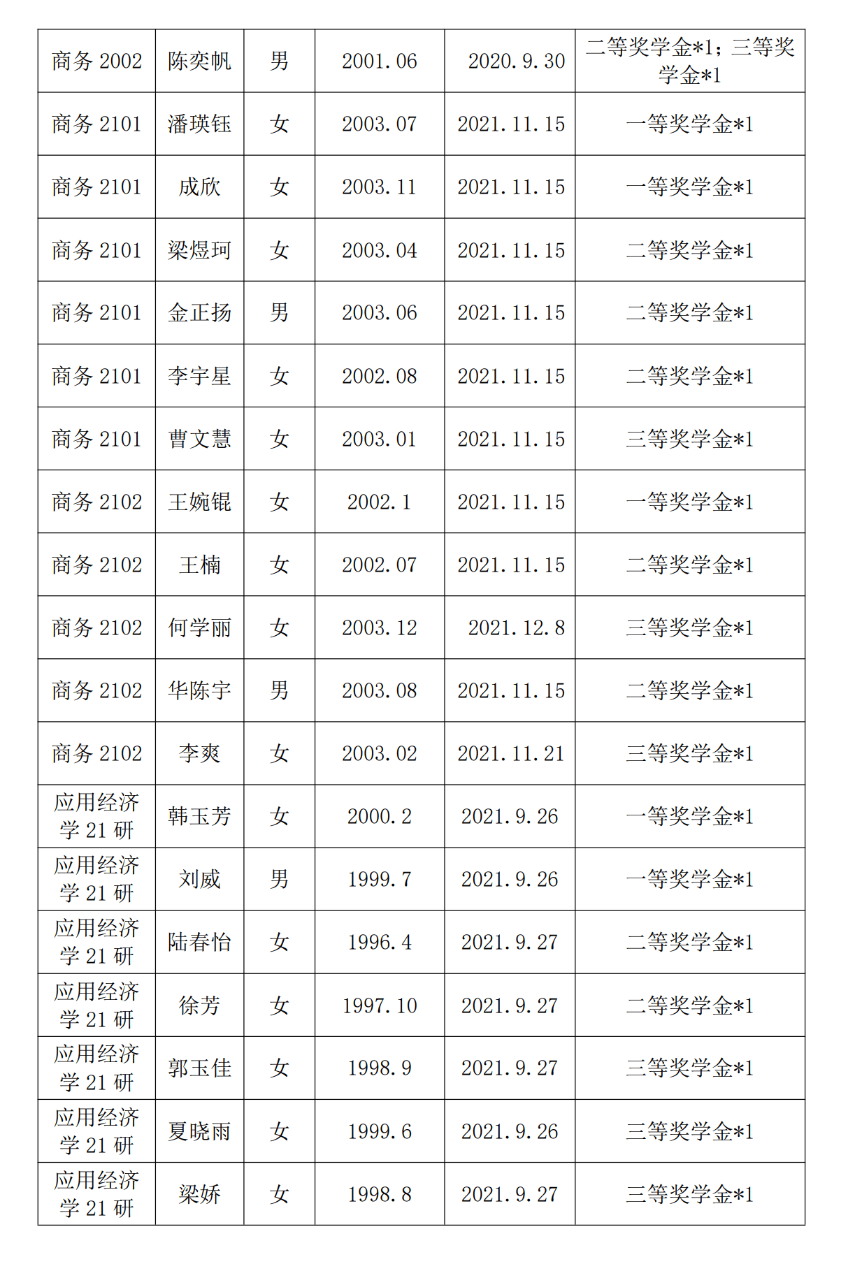 飞速直播 2021-2022年第一学期奖学金公示