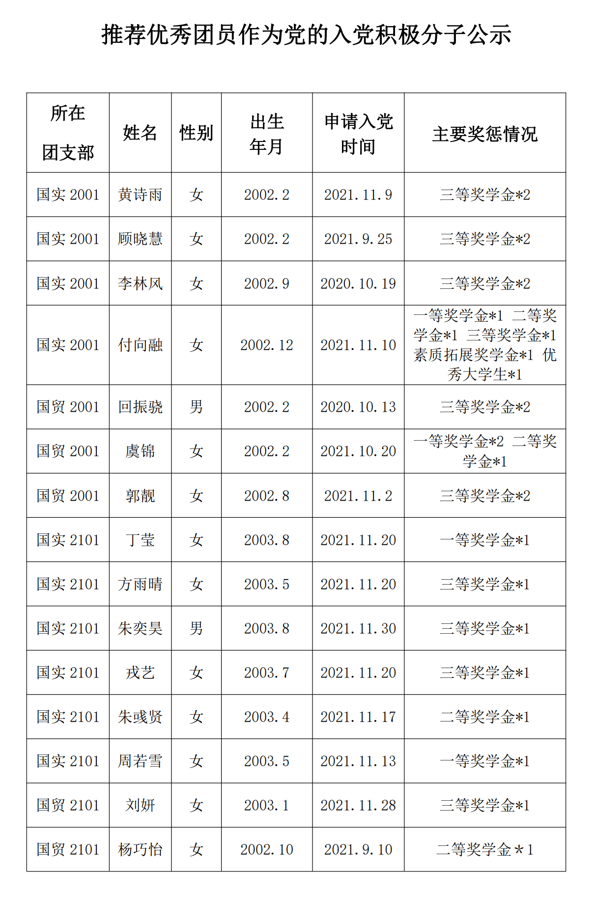 飞速直播 推荐优秀团员作为党的入党积极分子公示