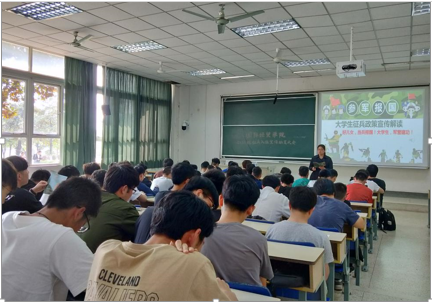 2015级于2018年4月26日在博远楼303教室举行了“征兵入伍宣传动员暨学费资助政策解读”主题班会。