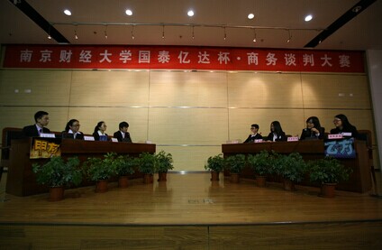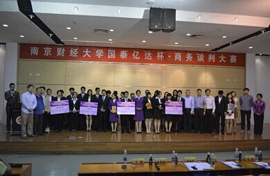本次大赛覆盖整个仙林大学城,参赛成员为来自仙林大学城九所高校商院的全日制在校本科生,力求将活动打造为专业性强、参与度高的大型学术型比赛。经过前期初赛、复赛的激烈角逐,最终共有六支队伍进入了决赛。分别是来自南京师范大学的“NO TRICKS”队、来自南京财经大学的“十日谈”队、“MVP”队、“再度领航”队和“临时凑一”队,以及来自南京大学的“Alliance”队。“商务谈判大赛”是一个以商务谈判为载体,大学生团队参与为主体的比赛。本次大赛着重于考察选手在实际商务谈判中的专业技巧、团队配合水平和临场应变能力,并以增强大学生实践能力、培养复合型经济人才为目的。获得一等奖的团队,将收获相应的奖金、证书、奖杯,同时,还将获得国泰亿达实业有限公司提供的一周国泰亿达夏令营、带薪暑假实习及就业机会。