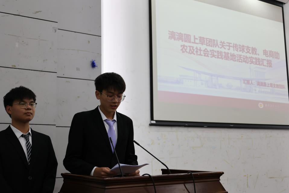 十二支优秀团队进行汇报展示,其中暑期社会实践团“漓漓圆上草”支教团队奔赴八桂宝地,在桂林灵川县开展为期半个月的支教活动,以青春力量助力乡村公益,以热忱之心赓续江桂之情。与时代同呼吸、与民族共命运,以青春力量、南财担当在支教活动中焕发绚丽光彩。