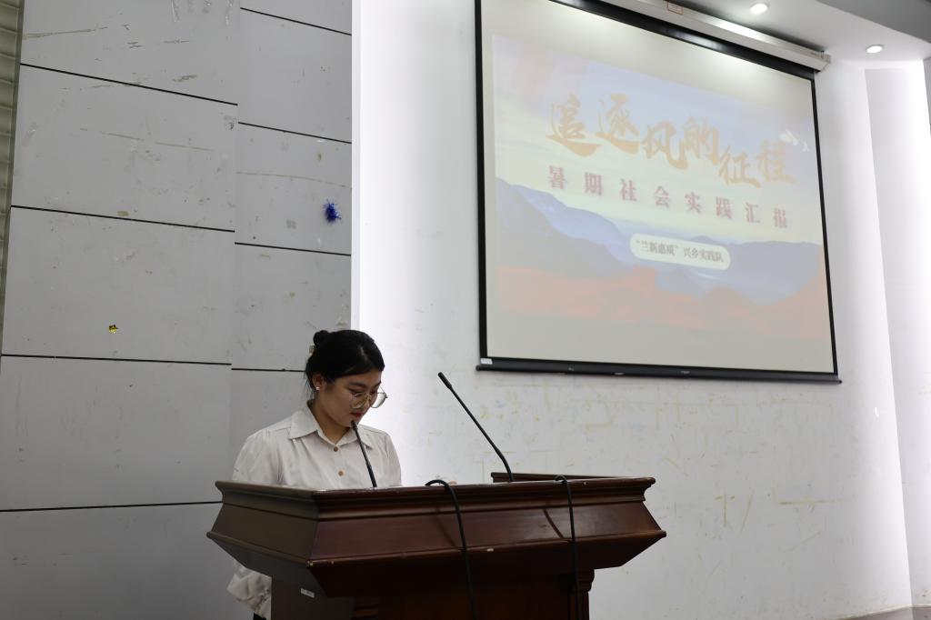 图为暑期社会实践负责人陈雪子发言