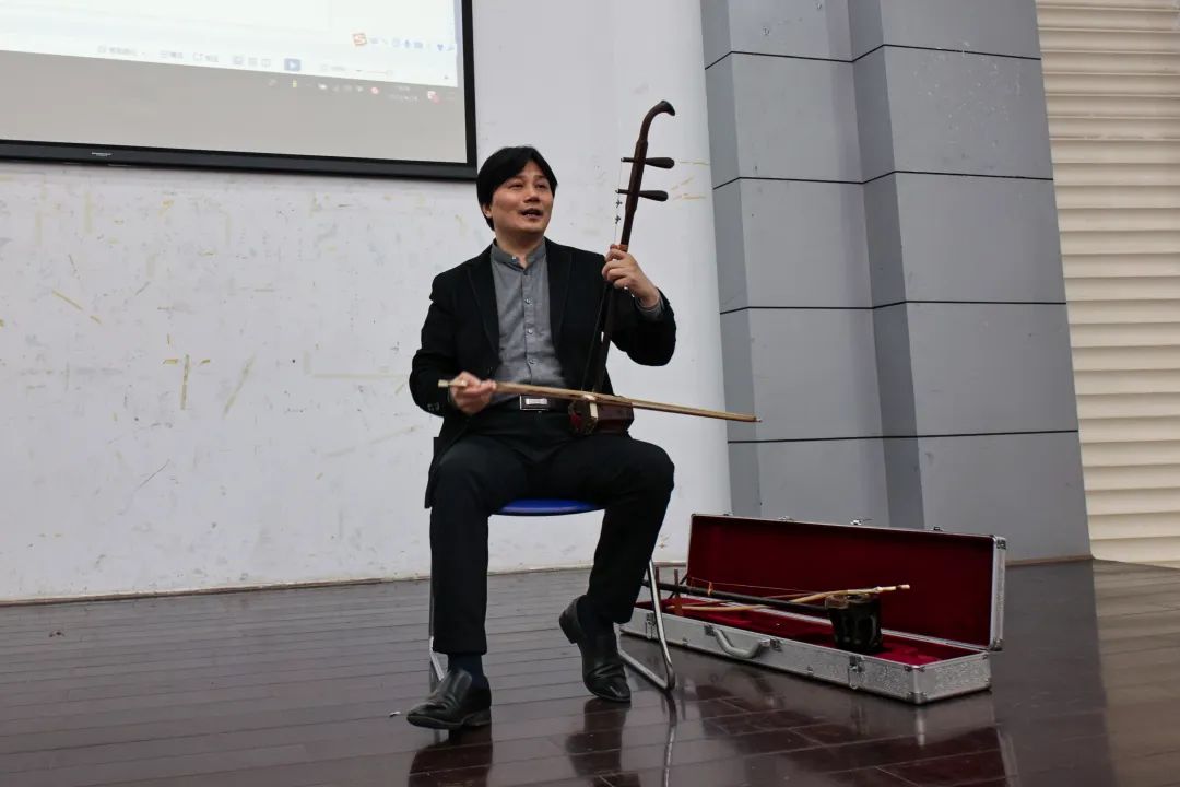 林东坡教授用幽默风趣的语言向大家揭示了国乐的奥秘,深化了同学们对国乐的认识,激发了同学们的文化自豪感和自信心。