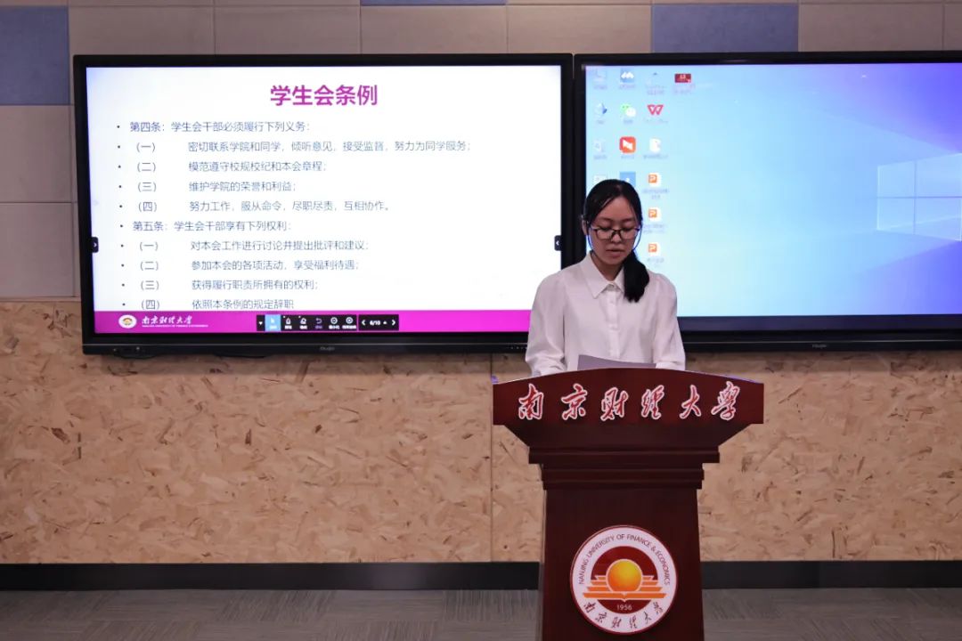 学生会条例。她表示,无规矩不成方圆,学生干部要认真学习规章制度,严格遵守组织纪律,做守时、守信、守规、守法的好青年。并强调莫当青年“官” 争做青年“友”,要坚定理想信念,不忘初心,牢记学生会为同学服务的宗旨,坚定不移跟党走,发挥学生会骨干的模范作用。