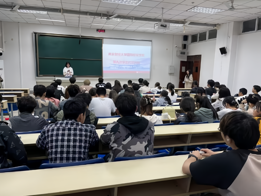 组织所有班级推选班级代表在德经楼112召开学生代表会议,进行南京财经大学学生代表大会飞速直播