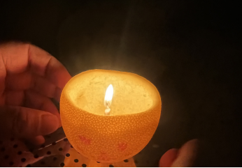 古时元宵灯会万人空巷,如今同学们为了庆祝元宵佳节,选择在家中制作花灯,寄托对节日的美好憧憬。先用马克笔在橘子顶上画一个圈,用勺子取出果肉,再用切下的盖子剪出两只耳朵,最后画出眼睛鼻子和嘴巴,吃剩的橘子皮就这样摇身一变,成为了可爱的兔子花灯。橘子,代表着平安,带有灯光的橘子花灯则象征着人们对于全家团圆、阖家幸福的期盼。“元宵佳节能跟家人一起度过很开心,和家人一起制作橘子灯,增进了和家人的感情,同时希望通过制作花灯祝愿祖国各地的游子心想事成,早日与家人团聚。”贸经2201班的赵星惠同学欣喜地说道。