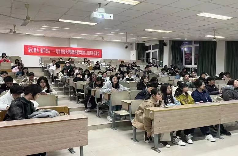 于博远楼103教室举办了以“凝心聚力,携手四六”为主题的四六级经验分享会。此次活动邀请到了国实2201的罗祉僖、周玥琳以及赵珪三位嘉宾为同学们分享备考的经验与技巧,三位同学都在四六级考试中取得了非常优异的成绩。