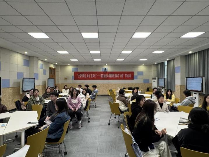 在博文楼101举办“大学青年说,两会新声代”两会精神专题学习活动。通过政策研读、主题研讨、知识竞赛等形式,引导国贸学子深入学习两会精神,推动专业学习与国家发展同频共振。