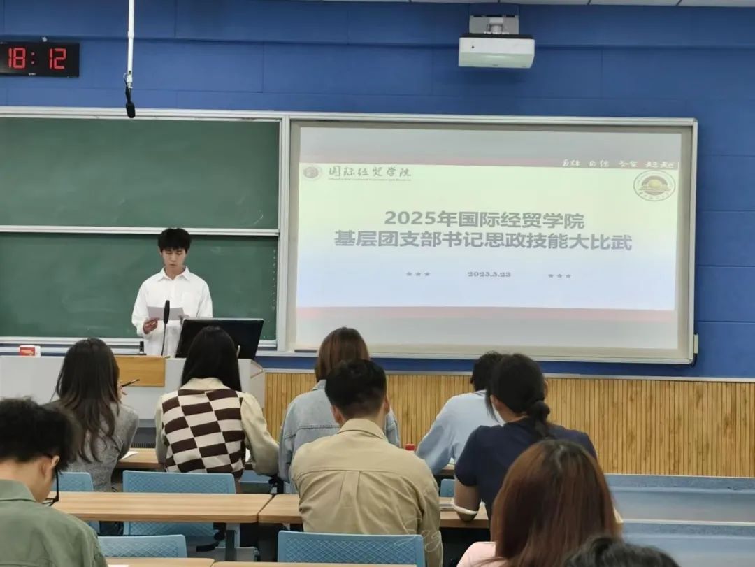 本次思政技能大比武中,团支部书记们紧扣时代主题,围绕党的二十大精神、青年使命担当、红色文化传承等内容,结合自身学习和工作实际,以生动的案例、鲜活的语言、新颖的形式,为现场观众带来一堂堂别开生面的思政微团课。贸经 2402团支部周添翼以 “青春之我挺膺中国式现代化 —— 争做‘五个模范’的时代先锋” 为题,结合乡村振兴实践,讲述青年在产业创新、基层服务中勇挑重担的故事,呼吁以理想信念为帆、以实干奋斗为桨,在推进中国式现代化中争做 “五个模范”,展现新时代青年挺膺担当的精神风貌。