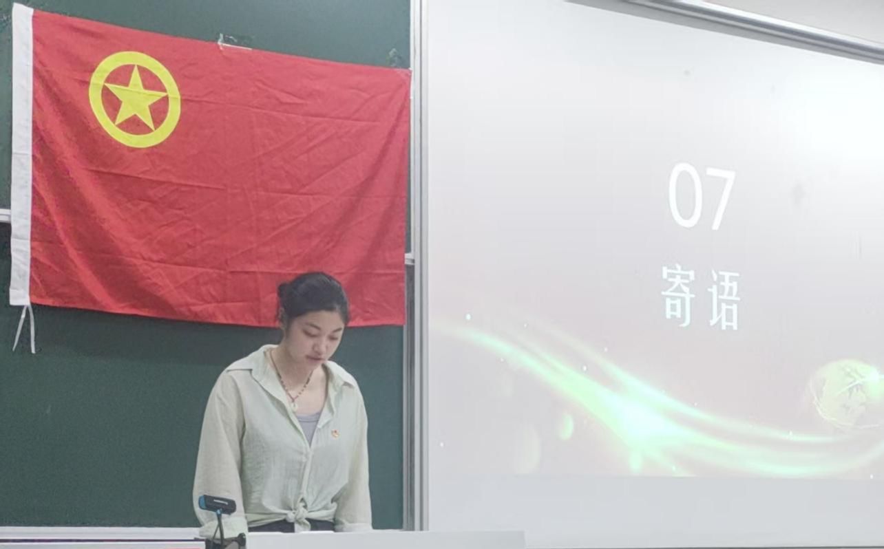 老团员代表金姜浩同学向新团员分享了自己在共青团成长过程中的收获与感悟,鼓励新团员们把握青春时光,勇担青春使命。