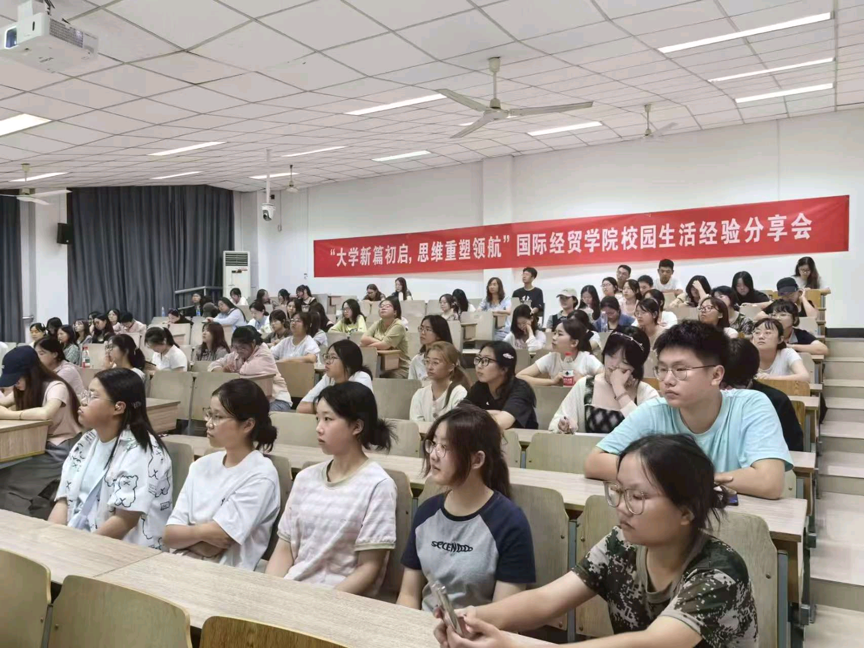 于9月12日晚在仙林校区博远楼106室成功举办“大学新篇初启,思维重塑领航”大学生活经验分享会。此次活动邀请到了五位优秀的同学进行学习、竞赛方面的经验分享,分别为国实2401班周若语、国实2401班沈欣烨、审计2402班吴晓可、人资2402班李坤、国贸2402班曹麟熙。