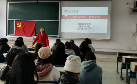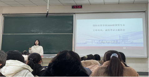 班级同学认真学习了《南京财经大学考场纪律与违纪处分规定》等相关文件,会议主持人对其中重要内容作了详细解释,使同学们充分认识到违反考试纪律的严重危害性。在班会的最后,同学们纷纷在诚信考试承诺书上签上名字,以保证自己在接下来的期末考试期间能够做到遵守考试纪律,诚信考试,诚心待人。