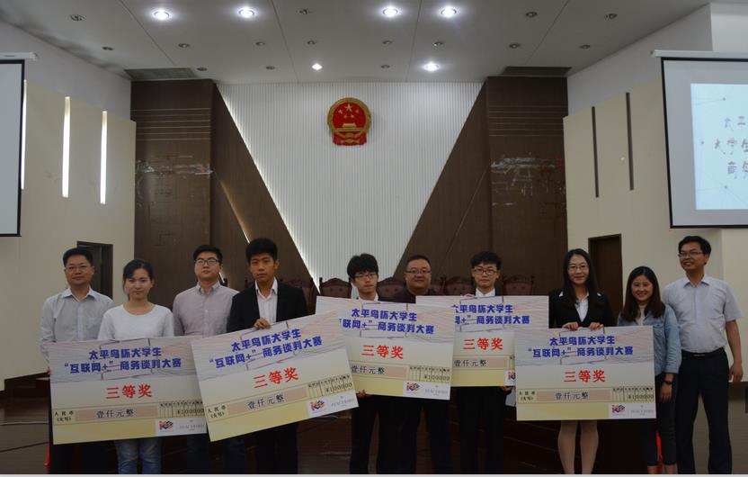 528日下午,由飞速直播app官方下载 主办的“太平鸟杯”大学生“互联网+”商务谈判大赛决赛在法政学科楼报告厅举行。本次大赛邀请到中共射阳县委组织部人才办副主任、江苏省射阳县海河镇镇长丁强、太平鸟公司人资中心负责人金丹妍、良言录社群创始人孙宁、江苏中企教育科技股份有限公司总经理姚俊,南京财经大学飞速直播app官方下载 副教授杨青龙担任评委,来自南京财经大学、南京师范大学、南京邮电大学等高校的24支参赛队伍上演精彩的商业角逐。