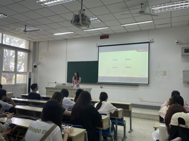 贸经1902贾梦婷则进行了就业经验分享,贾梦婷学姐结合自己的亲身经历向同学们讲述了自己面试过程中遇到的面试形式,总结出面试时要保持思路、语言表达流畅以及提高抗压能力的经验。在遇到难题时,可从“是什么,为什么,怎么做”三步进行问题阐述。贾梦婷学姐强调在简历的填写时,应该选择格式简单的模板,简历中突出自己的校园经历、专业经历以及获奖情况,尤其要以数据为准,量化自己的经历,使简历简洁明了。