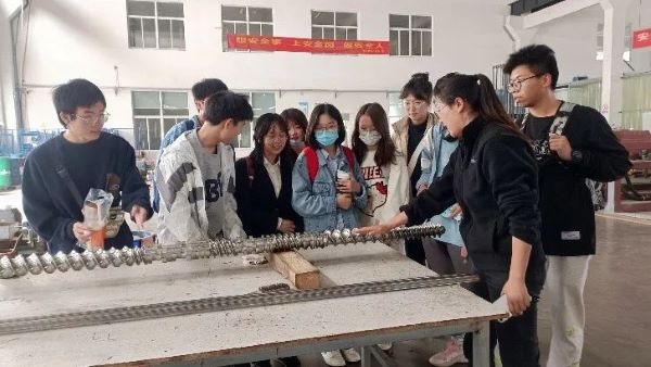 抵达欣沃公司后,负责人Gina带领同学们到车间进行了参观。塑料制品在生活中随处可见,但在这里,同学们亲眼见到了双螺旋挤出机的具体工作流程,见证了塑料原料的生产。通过Gina的详细介绍,同学们对平行同向双螺杆挤出机和不同的牵引磨合机有了更多的认识,大大开阔了同学们的视野。