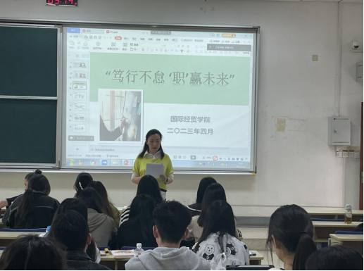在Z1-116举办“笃行不怠、‘职’赢未来”就业创业指导活动,国贸、贸经20级学生参加此次活动。
