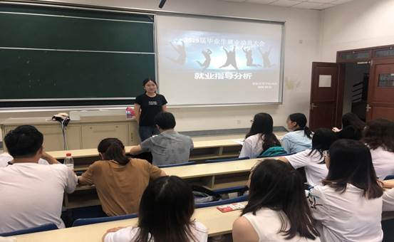 在专一103举办了2019届毕业生就业动员大会,会议由2015级学生党支部书记董敏老师主持。