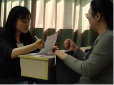 最后,是一对一的面试环节。面试伊始,同学们将提前准备好的简历交给面试官。随后,面试官便根据同学们事先准备的简历进行针对性的提问,以此考查同学们的随机应变能力和综合素质。当面试官问到贸经2202许雲茜对于销售职位的理解时,她便从容不迫地进行了逻辑清晰的回答:首先,她道出自己对销售的总体理解,她认为销售靠的是个人的人脉关系和交际能力;接着,她便结合自身去年暑期的实习经历进行进一步阐述。在面试过程中,面试官仔细聆听同学们的回答,或频频点头,或饶有兴趣地继续追问,与同学们在各个维度进行了深入交流。