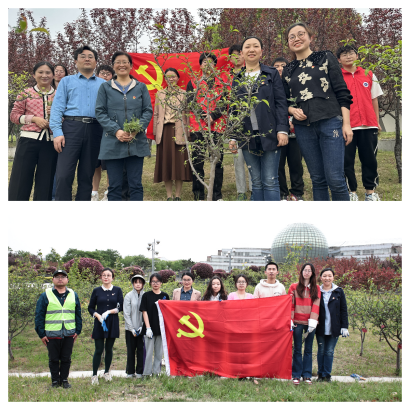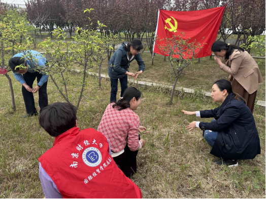 与后勤基建处在南京财经大学海棠园开展修树除草美化校园主题“党建+”融合联盟活动。