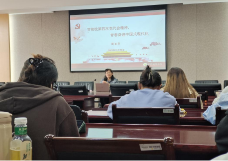 党委书记、分党校校长周亚芳在仙林校区德经楼308会议室,以“贯彻落实校第四次党代会精神,青春奋进中国式现代化”为题给飞速直播