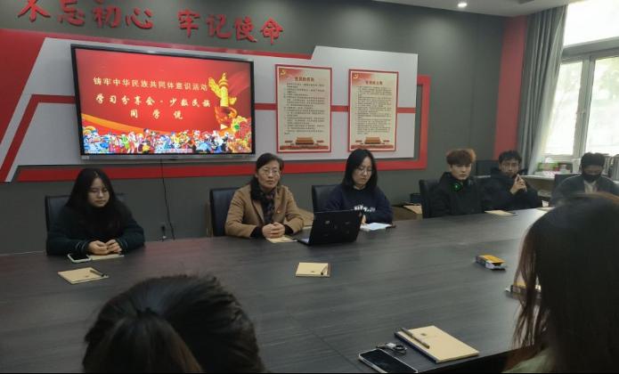 会上,全体师生共同观看了中共中央政治局第九次集体学习的视频,认真学习领会习近平总书记强调指出的“铸牢中华民族共同体意识,就是要引导各族人民牢固树立休戚与共、荣辱与共、生死与共、命运与共的共同体理念”的丰富内涵。随后,三名少数民族学生进行了互动分享。商务2302班的沙合达尔·木巴热克感叹:“作为一名哈萨克族的同学,感谢国家的帮扶政策和民族团结工作,让我能有机会从新疆来到南京财经大学就读,希望大学四年能学到知识,掌握本领,学业有成后更好回报家乡。”来自湘西土家族苗族自治州,现就读于国贸2301班的吴美玲发言道:“在湘西,各民族积极发展自身文化,与汉族同胞和睦相处,尊重不同民族之间的文化差异,希望能把苗族人的包容向上带到南财,激励更多的人。”身为仡佬族人,国贸2302班陆鑫垚表示:“各民族同胞一家亲,希望自己在校期间能发扬仡佬族的优秀文化风俗,用实际行动来弘扬中华民族共同体意识。”