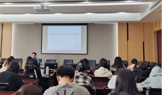党委副书记周进进以“加强党纪学习,筑牢党的纪律防线”为主题,在德经楼308会议室上专题党课。