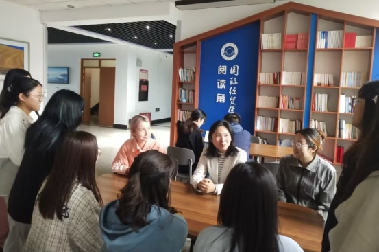 政治辅导员、副院长徐圆同志与结对宿舍同学们在德经楼三楼阅读角面对面座谈交流,了解同学们的生活状态和思想动态,切实为学生排忧解难。