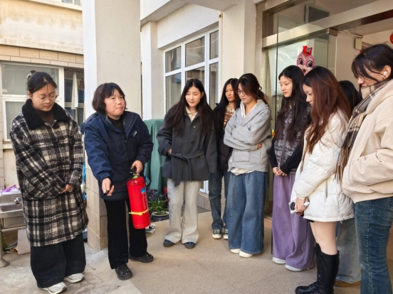 西苑5号站宿管站组织了消防安全演练,现场教学灭火器使用。宿管详细讲解了“提、拔、握、压”四字口诀和操作要领,并指导同学们轮流实操,让大家熟悉了应急流程。
