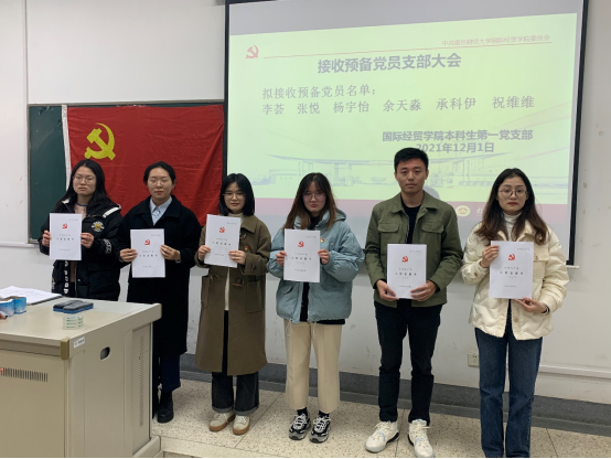 接收为预备党员的6名同学:李荟、张悦、杨宇怡、余天淼、承科伊、祝维维。