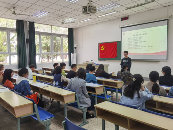 本科生第三党支部在德经楼Z1-106教室召开了发展党员大会,讨论贾梦婷等12名发展对象成为预备党员的事宜。出席此次会议的有本支部全体正式党员、预备党员以及发展对象和部分入党积极分子。本次大会由支部书记张朋朋主持,党委副书记季霞老师莅临指导工作。