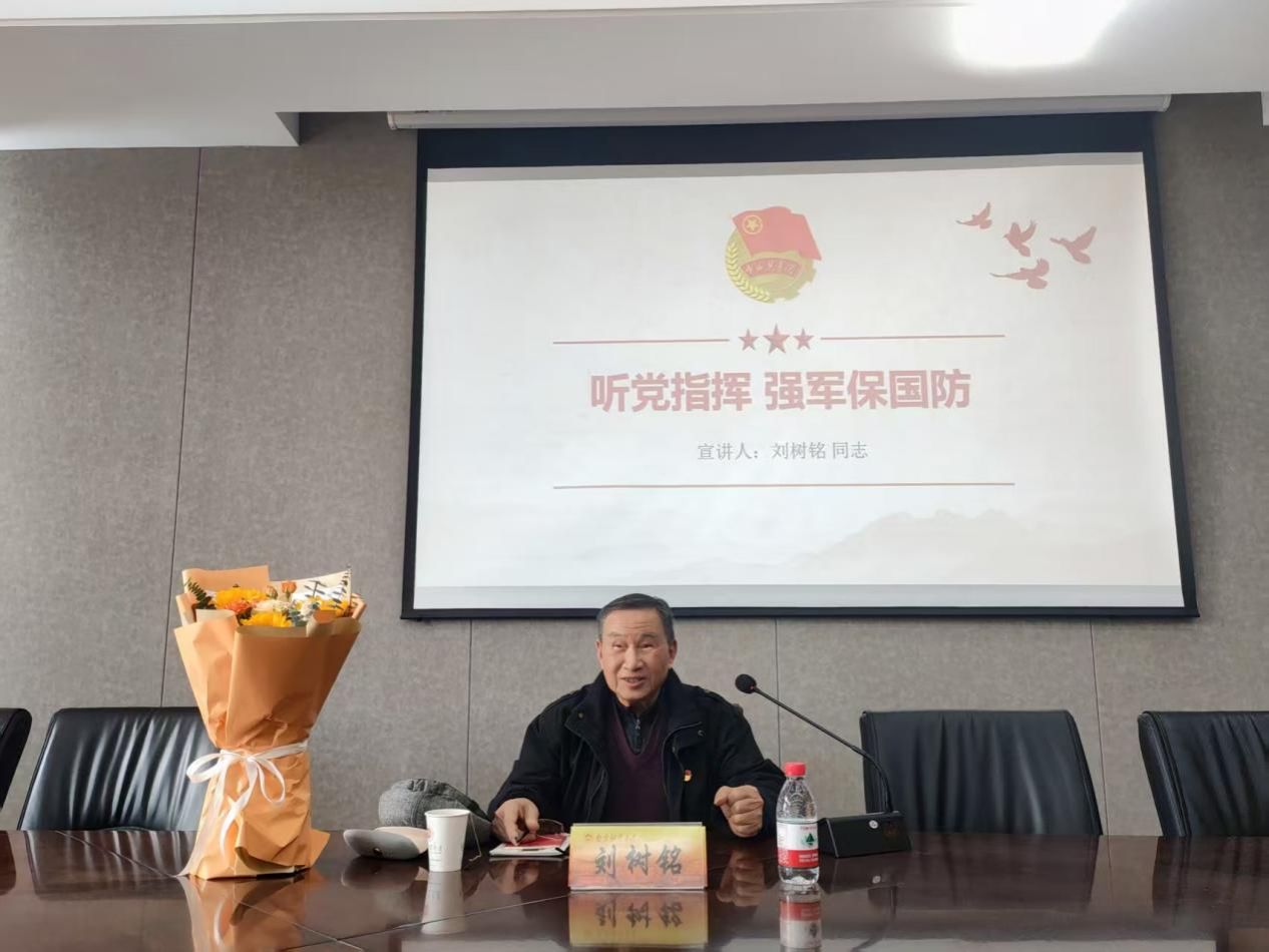 课堂上,刘树铭同志以防空作战日夜坚守、三线建设艰苦奉献等亲身经历,深刻诠释“退役不褪色、退休不离岗”的党员本色。他特意将当年击落的F-105战斗机模型与越南政府颁发的《团结战斗友谊》纪念章带到课堂上,结合实物生动重现击落敌机的战斗场景:“当时敌机疯狂轰炸,我们凭借着顽强意志和精准配合,成功击落敌机,这枚纪念章和模型就是最好的见证。”实物展示让学员们直观感受烽火岁月的艰辛与壮烈。