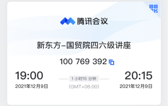 由于学校针对疫情实行的封闭管理防控措施,原定12月9日于线下举行的集训讲座调整为线上会议的形式,同学们通过腾讯会议参与培训。本次集训讲座主要就四六级考试中写作与翻译题型的解题思路与方式以及考前快速提分技巧进行了讲解。讲座老师就指出写作和翻译作为输出类题型不同于听力与阅读等输入类题目,更加注重同学们平时的积累以及对英语综合应用的能力,需要更有效和针对性的准备。