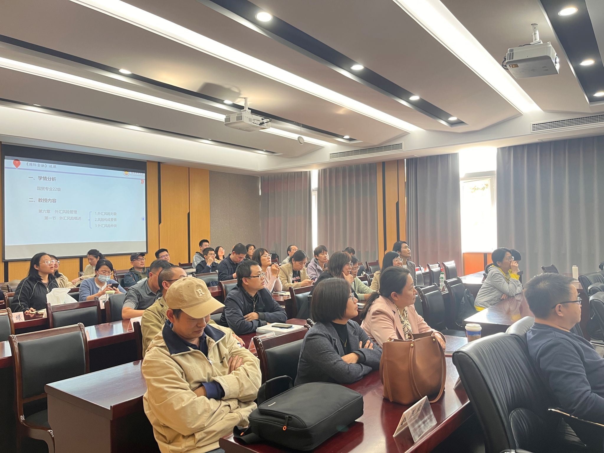 全体授课教师到场观摩学习。24位拥有着丰富教学经验及杰出教学能力的教师依次展开说课,他们围绕各自承担的课程,从课程目标设定、教学内容安排、教学方法与手段、考核评价体系等多个维度进行了生动详实的阐述。说课过程中,教师们不仅展示了深厚的专业素养,还体现了对学生学习需求的高度关注和对教学效果的持续反思。通过互动交流环节,教师们积极提问、热烈讨论,就如何进一步激发学生兴趣、提高课堂参与度等问题进行了深入探讨,现场气氛热烈而融洽。