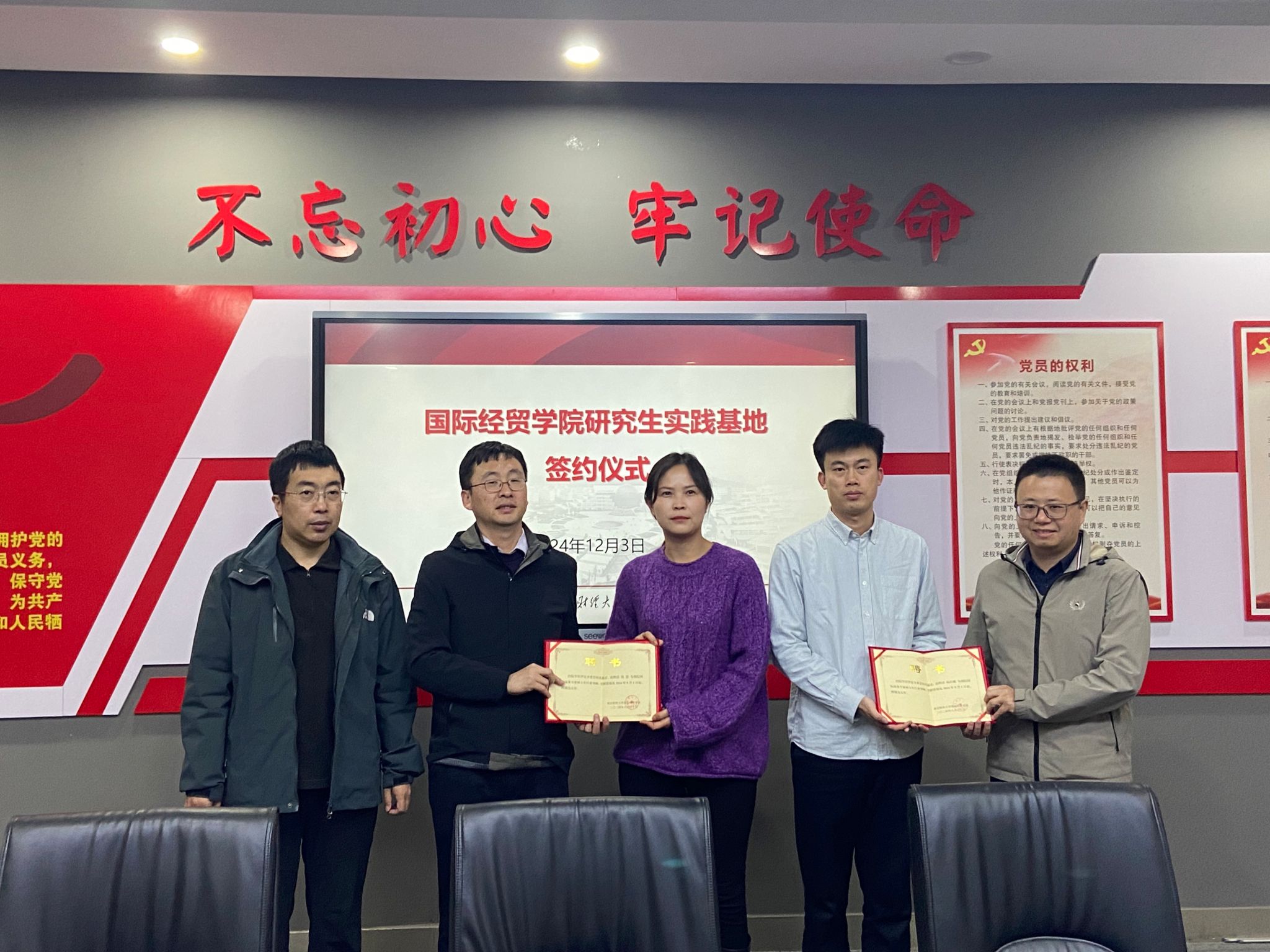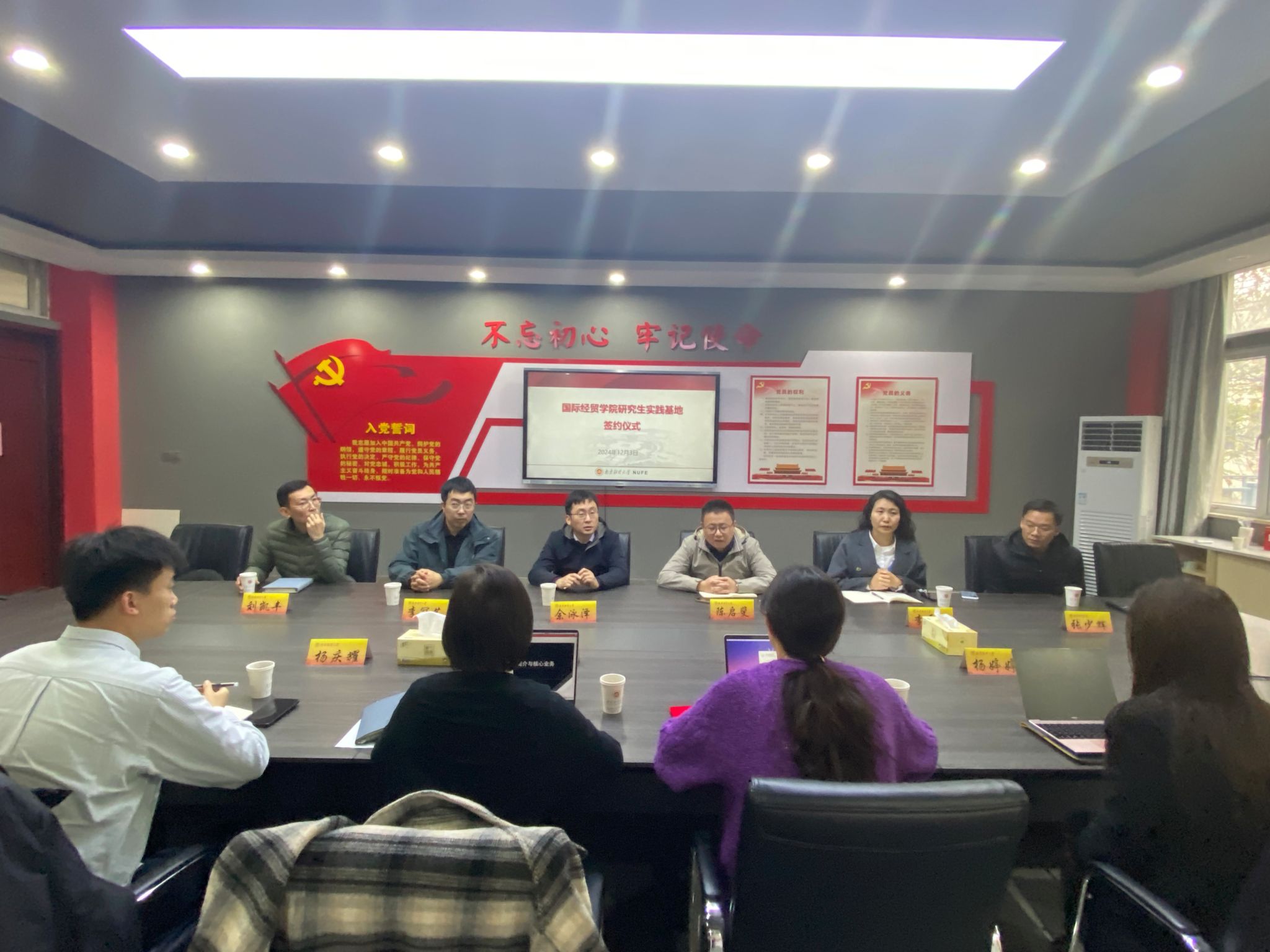与江苏未迟数字技术有限公司在德经楼206会议室举行了研究生实践基地签约仪式。余泳泽院长、陈启斐副院长、李冠艺副院长、学科骨干教师李平华、刘凯丰和张少辉出席了此次签约仪式。余泳泽院长对江苏未迟数字技术有限公司的四位领导莅临飞速直播app官方下载
