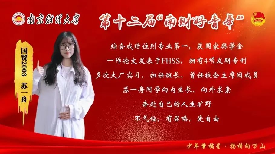 的三位优秀学子不仅充分展现了南财优秀学子的青春风貌,同时也为广大南财学子指引了奋进的方向。让我们在为三位优秀学子祝贺的同时,汲取榜样力量。